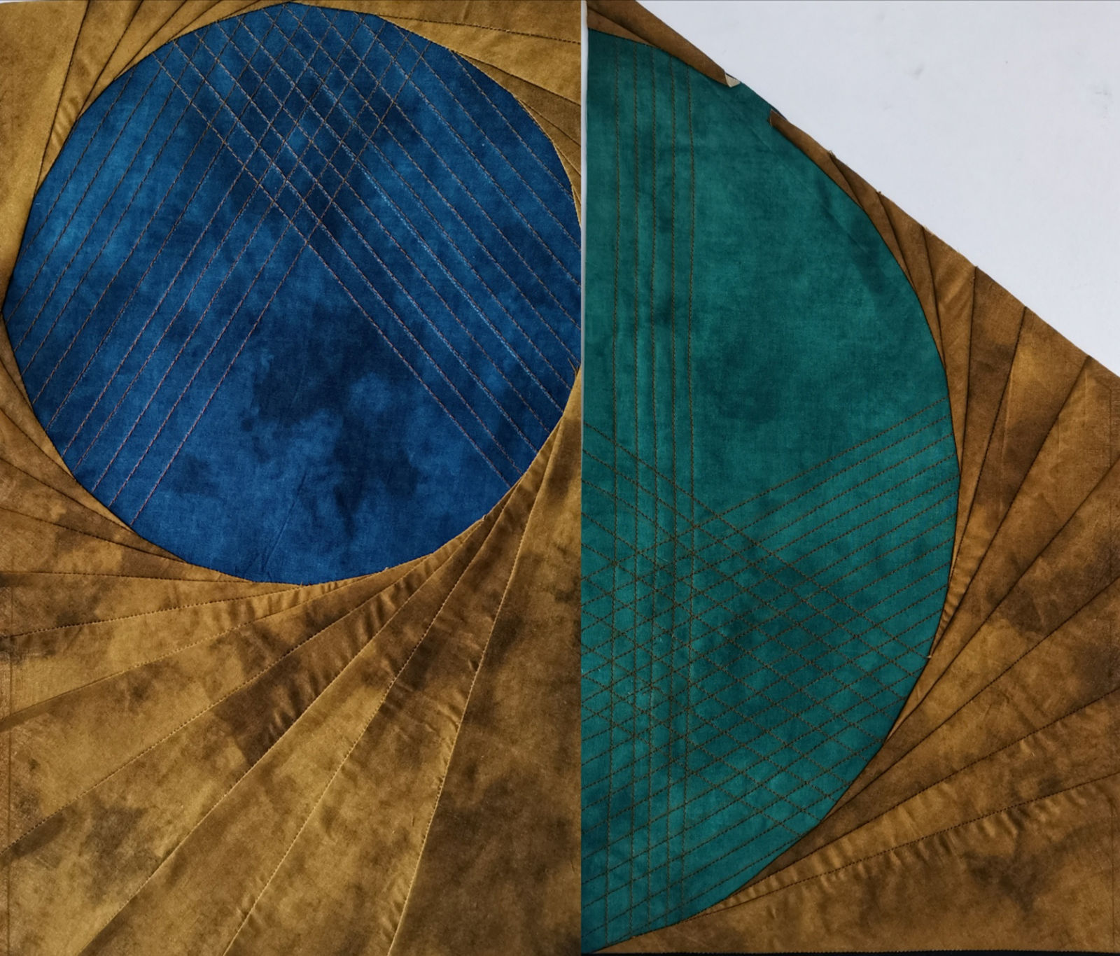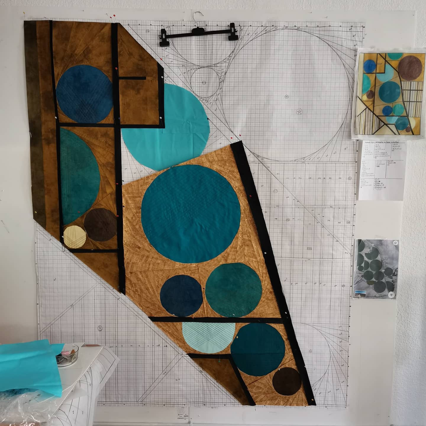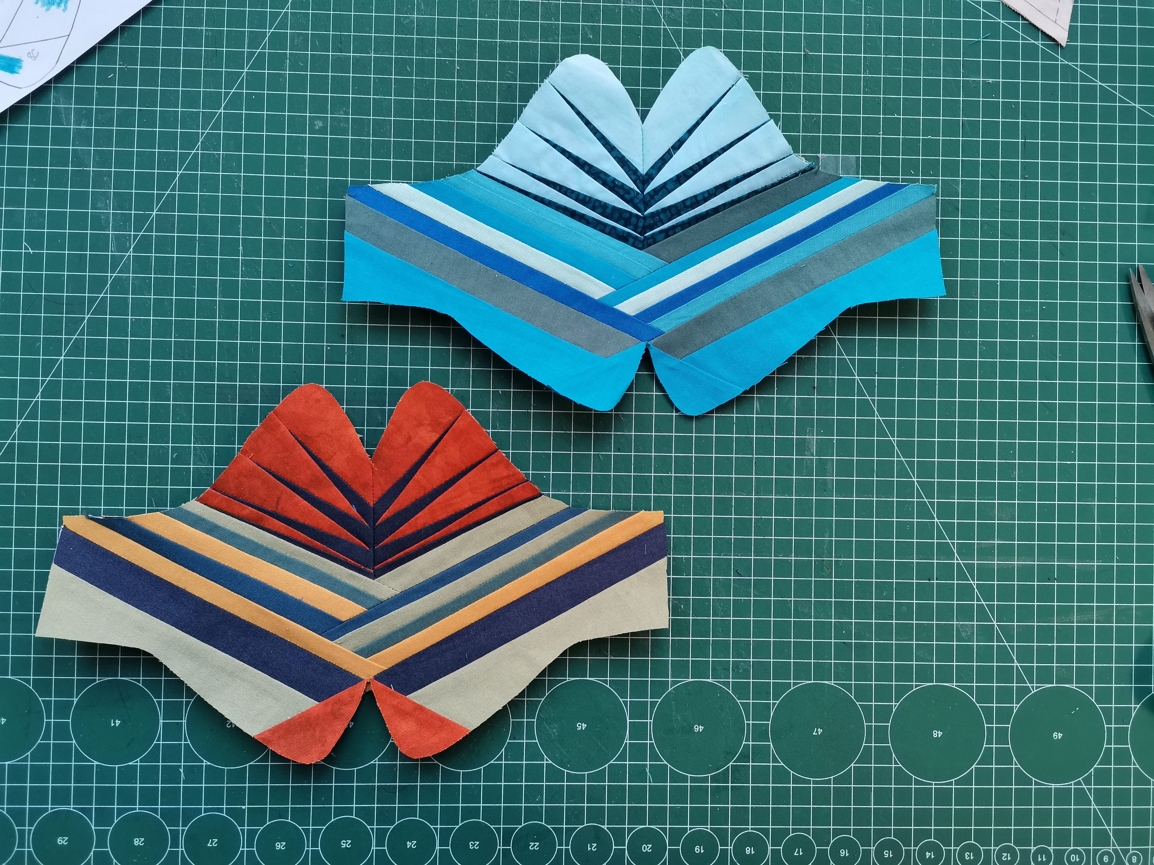 El patchwork es un Arte milenario donde predomina el trabajo riguroso con los textiles, es una labor muy exquisita de detalle y de mucha paciencia. Yo no suelo ser perfeccionista y tampoco paciente, sin embargo, cuando realizo estos trabajos se rompen todos los esquemas. En el caso del método Foundation Paper Piecing fué todo un suceso cuando lo encontré, sucedió por casualidad un día viendo imágenes de obras en un festival de quilt que se realiza anualmente en Birmingham Inglaterra, la manera en la que estaban cosidas aquella piezas eran de un nivel de precisión, de perfección y de complejidad que no podía descifrar, lo cual captó toda mi atención y no paré hasta lograr entender durante par de meses después la intrincada madeja que hay detrás de los patrones que acompañan este tipo de obras. Mi inglés no es bueno, pero eso no fué un impedimento para ir traduciendo poco a poco el único libro que hallé y que me orientó para hacer mis propios dibujos en base a esta técnica hasta convertirlos luego en esos mapas de los que hemos estado hablando. Fue toda una odisea, pero ahora mismo esto me da una confianza enorme en los próximos trabajos que quiero hacer y me hace sentir súper feliz.