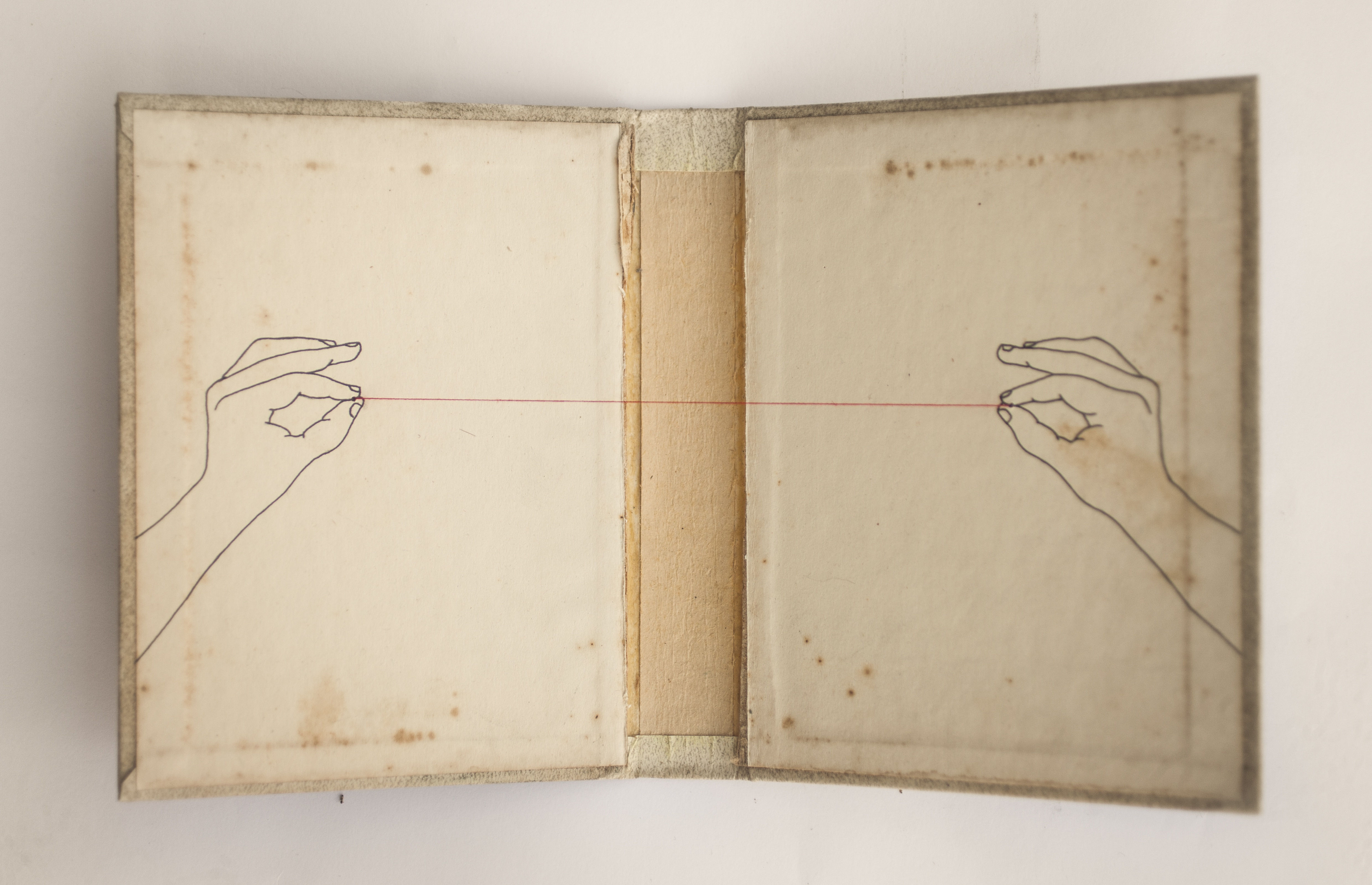 La poesía del objeto es el nombre de la exhibición que expone tres secciones o espacios autónomos de significación, aunque se entremezclan. En un primer momento encontramos “Dibujos”, una serie de obras en la que los libros se desprenden de sus páginas, de su volumen, para dar paso a dibujos sueltos. Libros que se des-montan. Es decir, el contenido se transfigura en otro cuerpo significante, entre la tapa y la contratapa.